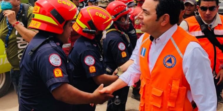 La ofensiva gubernamental inició desde tempranas horas del día, cuando el presidente Jimmy Morales y su esposa, Patricia Morales de Marroquin visitaron Escuintla, uno de los tres departamentos afectados por la actividad volcánica, para conocer la magnitud de la tragedia ocurrida el domingo, de esa cuenta se acercaron al salon municipal departamental e instituto basico Simon Bergaño y Villegas donde saludaron y se solidarizaron con los damificados».