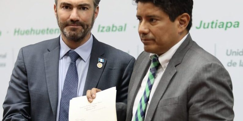 Guatemala, 6 de noviembre de 2018. El Ministro de Economía, Acisclo Valladares Urruela, recibió esta mañana el dictamen favorable de la Comisión de Economía y Comercio Exterior para la iniciativa 5500, Ley Proguatemala , que creará el Instituto Guatemalteco para la Promoción Comercial, Competitividad, Productividad, Inversión, Marca País, e Inteligencia de Mercados,