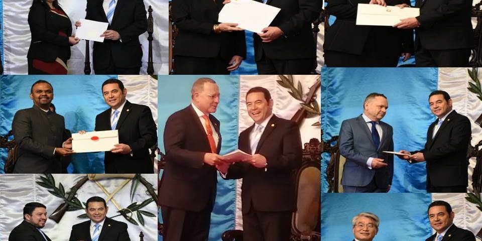 En el Palacio Nacional de la Cultura ocho diplomáticos de diferentes países presentaron al presidente Jimmy Morales Cartas Credenciales, las cuales les acreditan como embajadores de sus naciones en Guatemala.