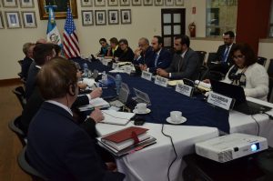Según información de Ministerio de Relaciones Exteriores, el Canciller Pedro Brolo sostuvo una reunión con el Comisionado interino de Aduanas y Protección Fronteriza de Estados Unidos, señor Mark Morgan, para trabajar en conjunto en el fortalecimiento de la seguridad fronteriza, evitar la trata de personas y generar condiciones para el desarrollo económico.