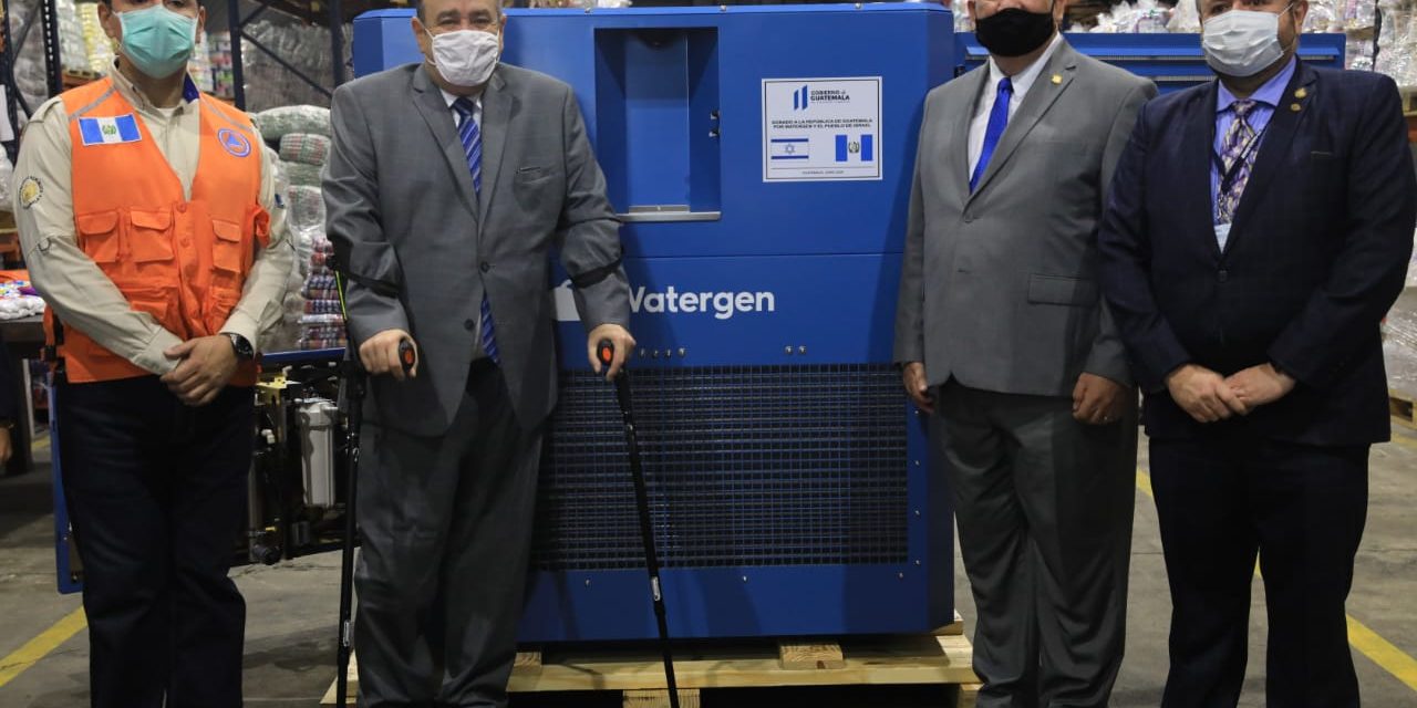 El presidente de Guatemala, Alejandro Giammattei, recibió hoy un generador atmosférico de agua para que la Coordinadora Nacional para la Reducción de Desastres (Conred) pueda proveer del vital líquido a comunidades afectadas por las lluvias.