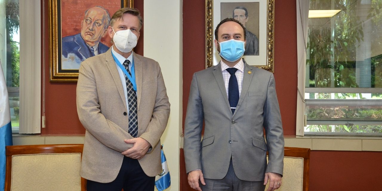 El Canciller de la República de Guatemala, Pedro Brolo Vila, sostuvo hoy una reunión bilateral con el señor Mika Kanervavuori, nuevo representante designado para Guatemala, por la Oficina del Alto Comisionado de las Naciones Unidas para los Derechos Humanos.
