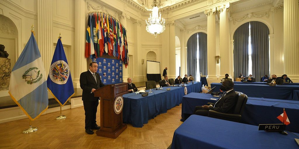 Reconoció los esfuerzos de la OEA y de los gobiernos “en señalar y denunciar a aquellos países que no están viviendo a la altura de los compromisos democráticos en los que han incurrido a nivel regional e internacional”. Por otro lado, reiteró el compromiso de su Gobierno (2020-2024) de servir al país “y trabajar sin descanso en la construcción de una Guatemala diferente, más próspera, más justa y con mayores oportunidades para todos, sobre la base del Plan Nacional de Desarrollo K´atun: Nuestra Guatemala 2032, y la Agenda 2030 para el Desarrollo Sostenible”.