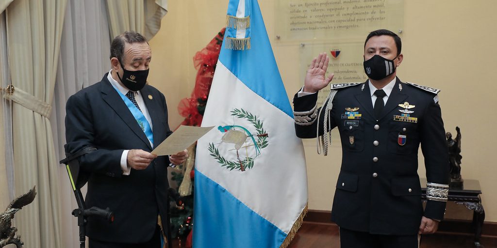 De acuerdo a la información de la Secretaria de Comunicación Social de la Presidencia el Presidente Alejandro Giammattei, juramentó esta mañana al General de Brigada Henry Yovani Reyes Chigua, como ministro de la Defensa Nacional, en un acto protocolario donde pasó a situación de retiro el General de División Juan Carlos Alemán Soto.