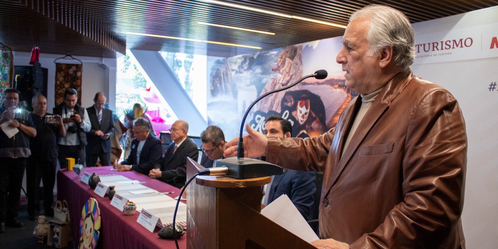 Durante la conferencia de prensa se contó también con la presencia del subsecretario de Turismo, Humberto Hernandez Haddad; el presidente del Fideicomiso para la Promoción Turística de Acapulco, Manuel Negrete Arias; el presidente de AMAV Nacional, Felipe Cervantes Vega; el presidente de Conexstur, Víctor Enriquez; el presidente de AMAV CDMX, Raymundo Marcos Flores Meléndez; el presidente AMAV filial CDMX, Edgar Gonzalo García; el presidente de la Agrupación de Guías, Choferes y Prestadores de Servicios Turísticos de la República Mexicana Adolfo López Mateos, Alfredo Pérez Santiago; entre otros.