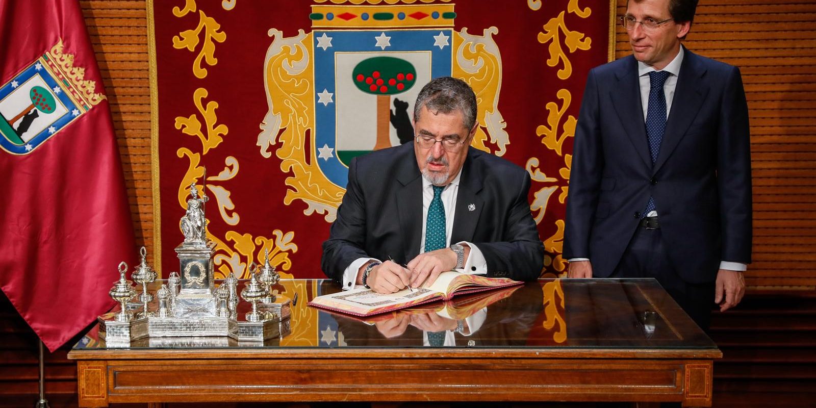 En el marco de su visita a España, el Presidente de la República Bernardo Arévalo se reunió con el Alcalde de la Ciudad de Madrid José Luis Martínez Almeida estrechando así los lazos con esta importante ciudad y ha firmado el Libro de Oro.
