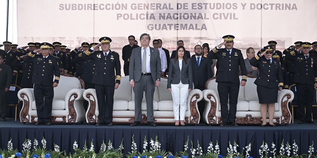 Ministro de Gobernación Francisco Jiménez, acompañado de la Viceministra de Seguridad Claudia Palencia, participaron en los actos de graduación de 2 mil 431 agentes de la 55 promoción de la Policía Nacional Civil, cuyo acto se llevó a cabo en el campo de maniobras de la Escuela de Formación de Oficiales de Policía (Esfop).