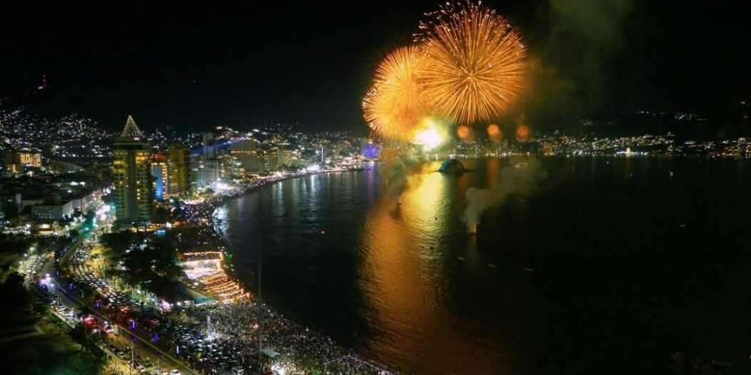 Como parte de la celebración de fin de año, tuvo lugar la tradicional gala de pirotecnia, donde los turistas presenciaron un espectáculo piromusical de más de 10 mil fuegos artificiales y figuras alusivas a Acapulco en el cielo con 800 drones.