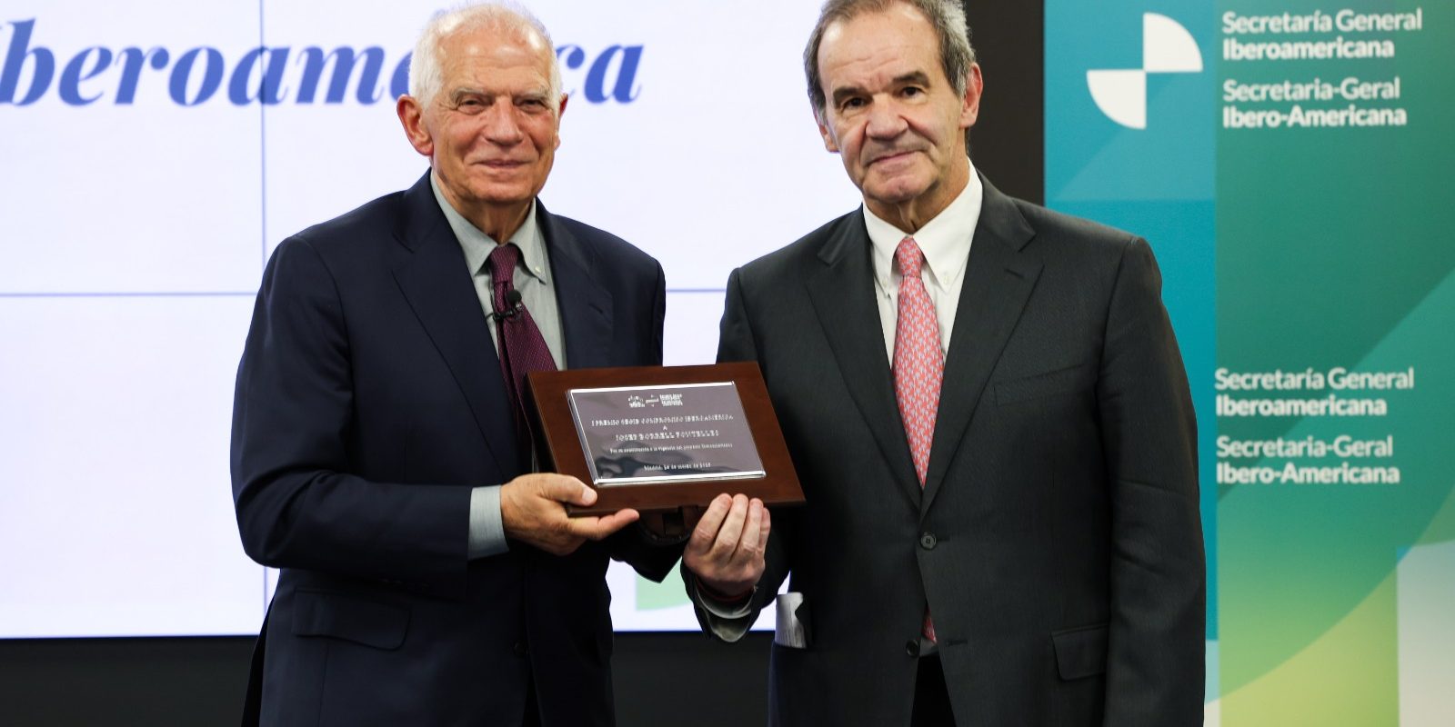 El Secretario General Iberoamericano, Andrés Allamand, entregó hoy el Premio SEGIB: Compromiso Iberoamérica al político español Josep Borrell por su trabajo y apoyo a Iberoamérica.