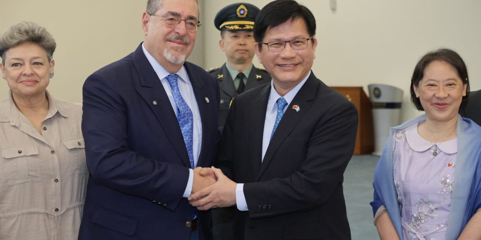 El presidente Bernardo Arévalo en su arribo a la república de China (Taiwán) fue recibido por el Canciller del país anfitrión Lin Chia-lung. El propósito de la visita de la visita del mandatario es entrevistarse con el presidente Lai Ching-te para abordar temas relacionados con la cooperación para el desarrollo tecnológico de Guatemala, así como buscar la atracción de inversiones importantes de empresas que se dedican a la alta tecnología en este país.