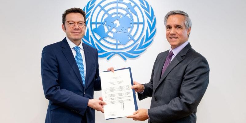 El Embajador y el Director General Interino conversaron sobre la valiosa contribución de la Oficina de las Naciones Unidas contra la Droga y el Delito (UNODC) para enfrentar desafíos críticos como el crimen organizado transnacional, la corrupción, el ciberdelito y el tráfico ilícito de drogas.